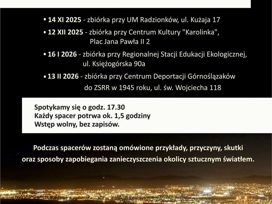 - 14 XI 2025 – zbiórka przy UM Radzionków, ul. Kużaja 17