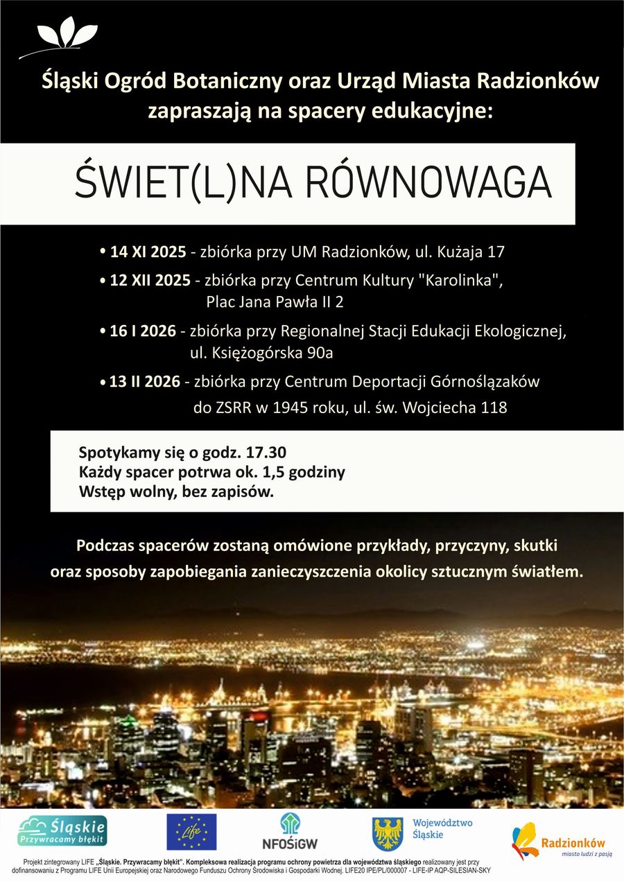 Śląski Ogród Botaniczny w Radzionkowie zaprasza w sezonie jesienno-zimowym do udziału w spacerach pn. „Świet(l)na równowaga”.
