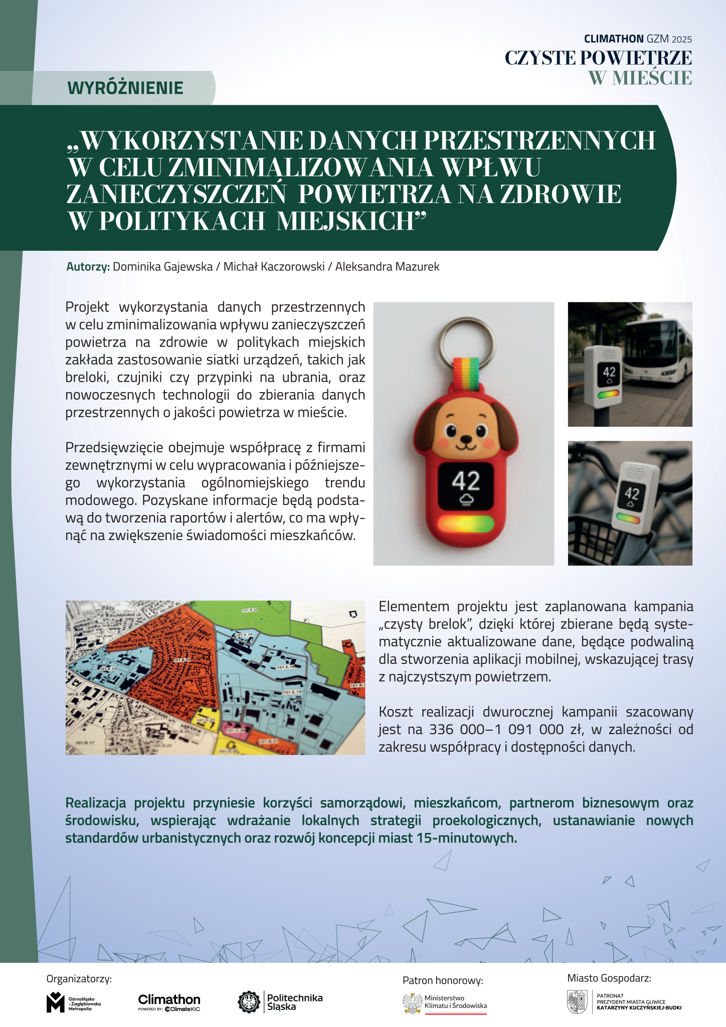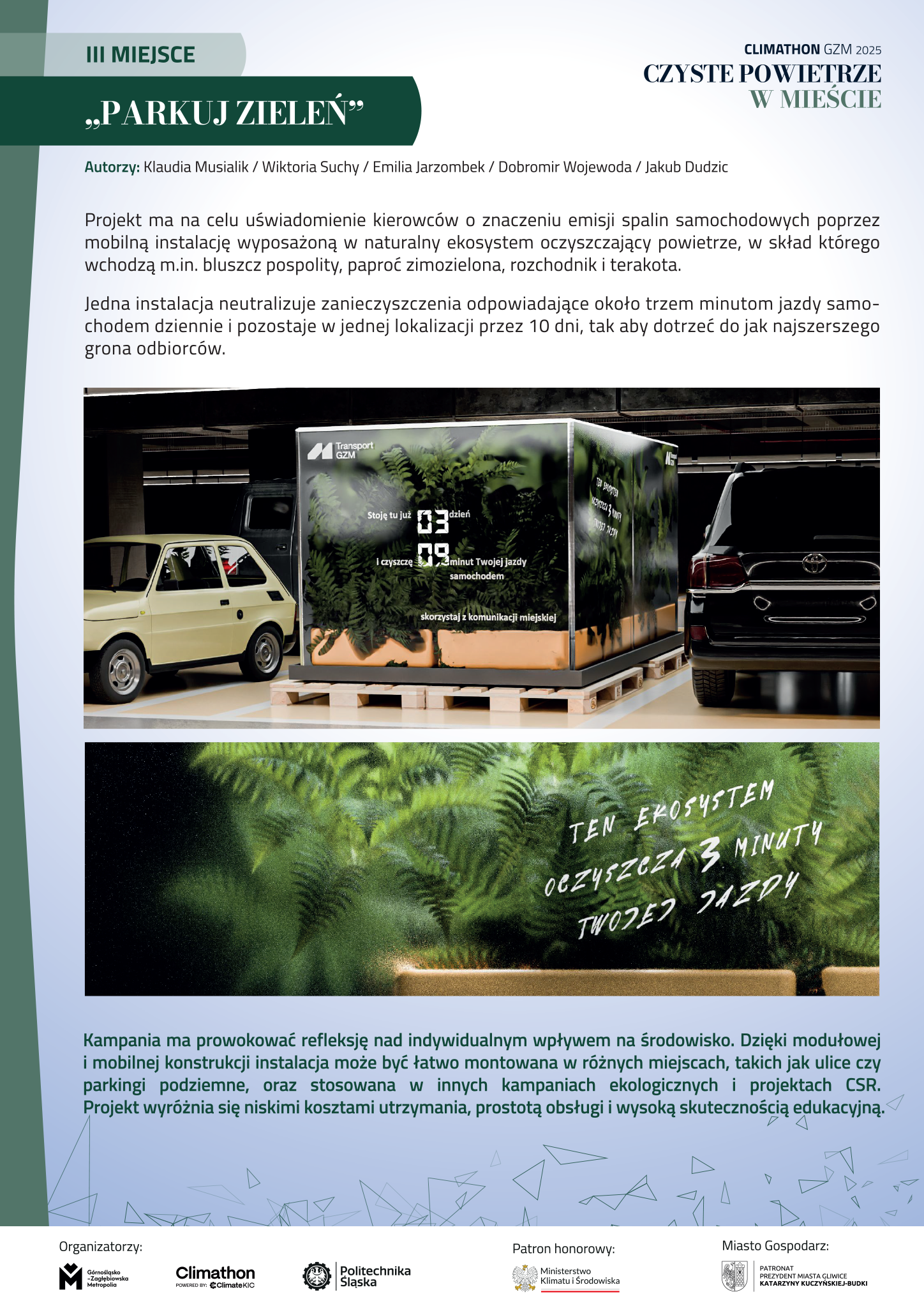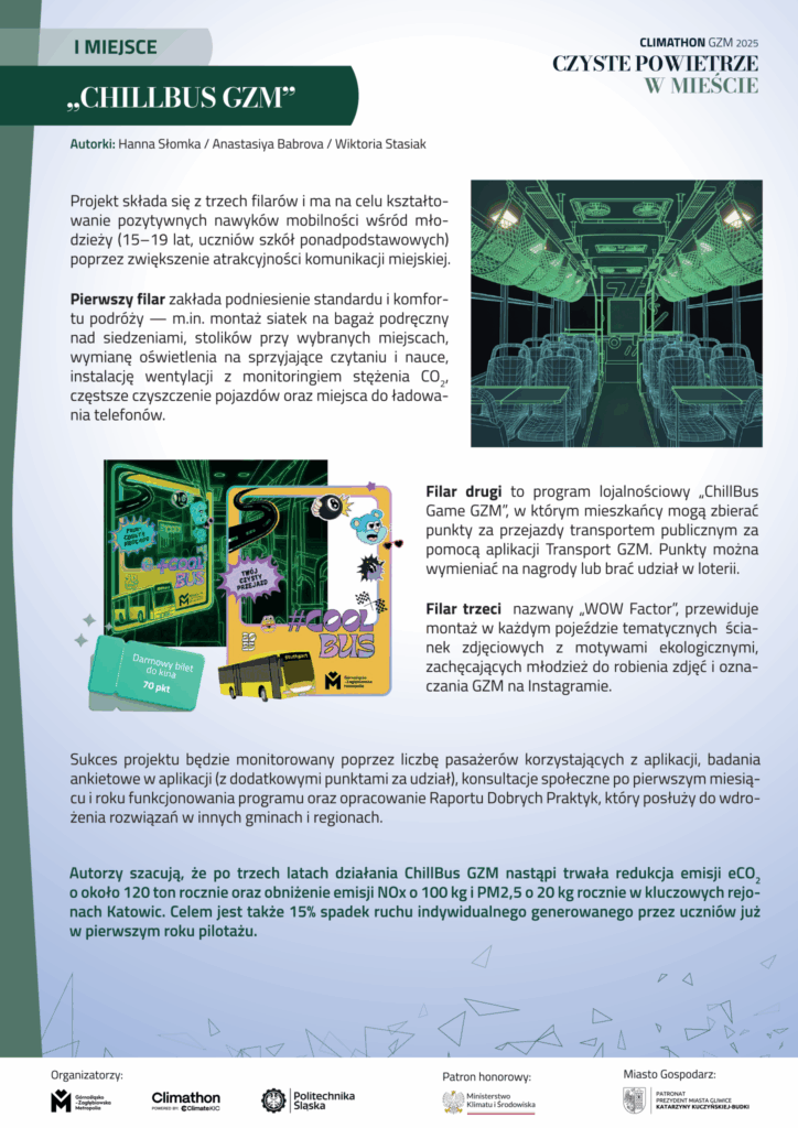 Climathon, to 24-godzinny wyścig kreatywności odbywający się równolegle w ponad 100 miastach na świecie. Podczas metropolitalnego wydarzenia uczestnicy szukają rozwiązań w jaki sposób, w trosce o ochronę klimatu, możemy rozwiązać ekologiczny problem, który jest motywem przewodnim corocznej edycji. Na autorów najlepszych pomysłów czekają nagrody finansowe i rzeczowe. A przede wszystkim wspaniałe emocje i wielka satysfakcja. Konkurs skierowany jest do studentów wszystkich uczelni w całej Polsce. Wiedza specjalistyczna ani umiejętności programistyczne nie są potrzebne.