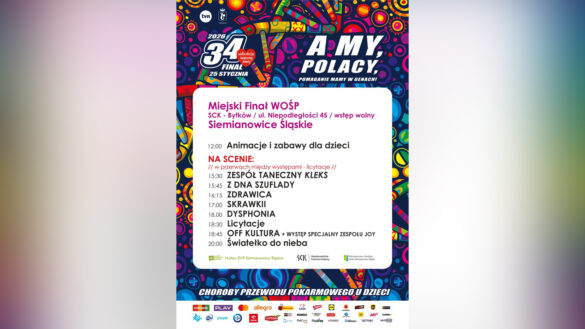 Hufiec ZHP Siemianowice Śląskie i Siemianowickie Centrum Kultury zapraszają w niedzielę 25 stycznia do SCK-Bytków na miejski finał Wielkiej Orkiestry Świątecznej Pomocy. Wstęp wolny. W tym roku Orkiestra będzie zbierać fundusze na diagnostykę i leczenie chorób przewodu pokarmowego u najmłodszych pacjentów, pod hasłem „Zdrowe brzuszki naszych dzieci”….